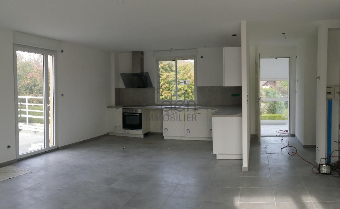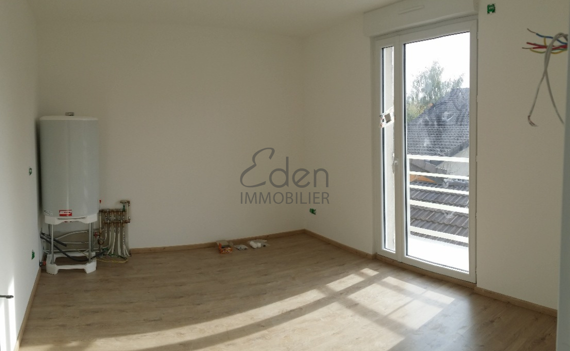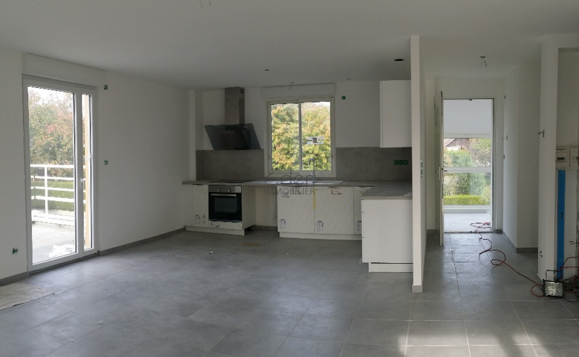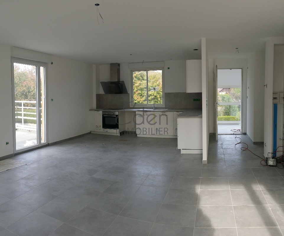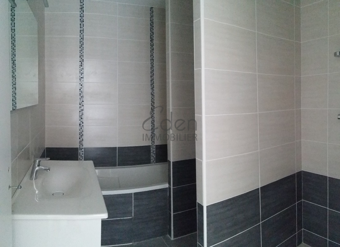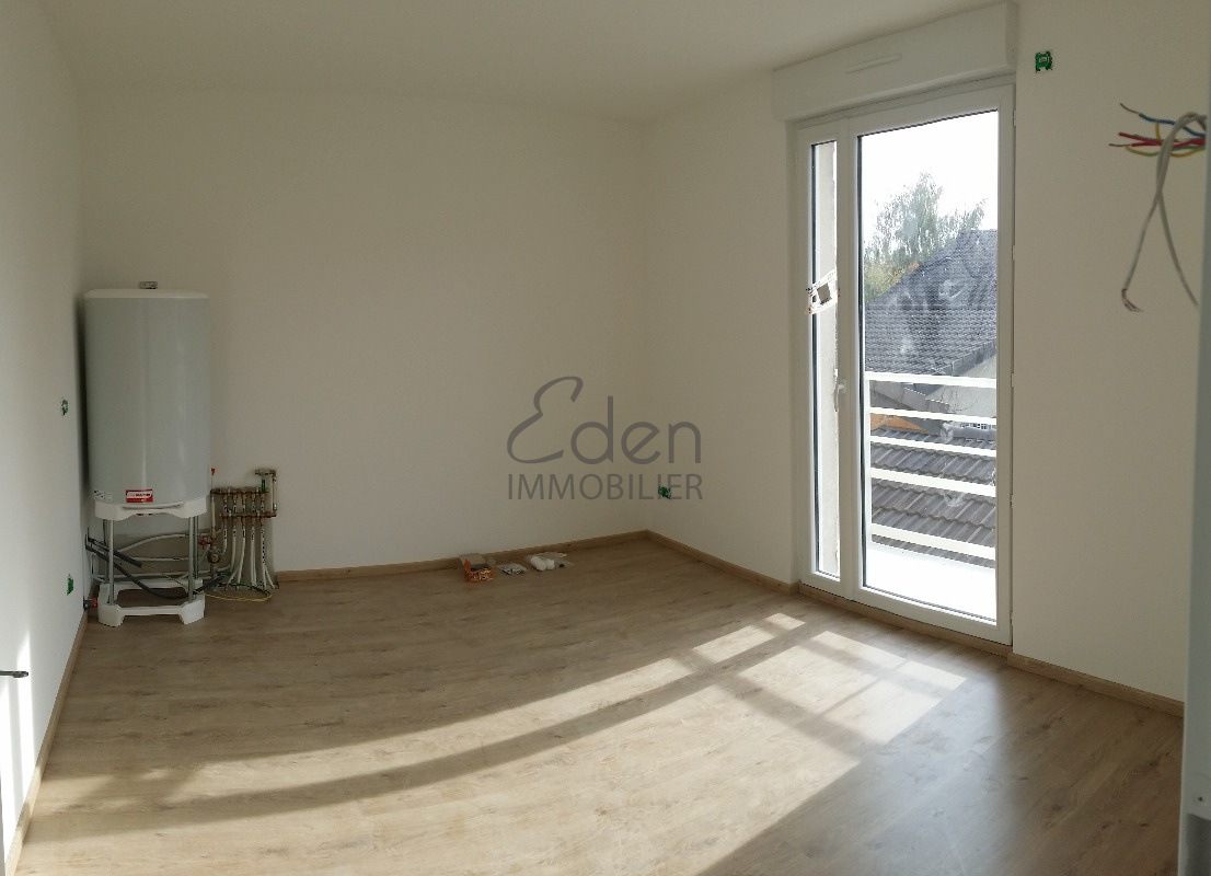 218 ORNEX- Au 1er étage d'une villa jumelée, très beau T3 non meublé de 75 m2 comprenant un hall d'entrée avec placard, une cuisine équipée ouverte sur une belle pièce à vivre très lumineuse, 2 chambres avec placards, salle de bains avec douche et baignoire.