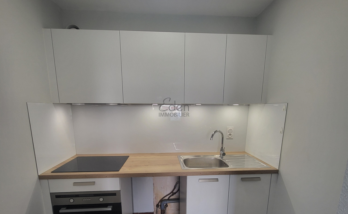 Il se compose d'une entrée avec placard, d'une cuisine semi-équipée ouverte, d'un séjour agréable et lumineux, d'une chambre confortable, ainsi que d'une salle de douche avec WC.