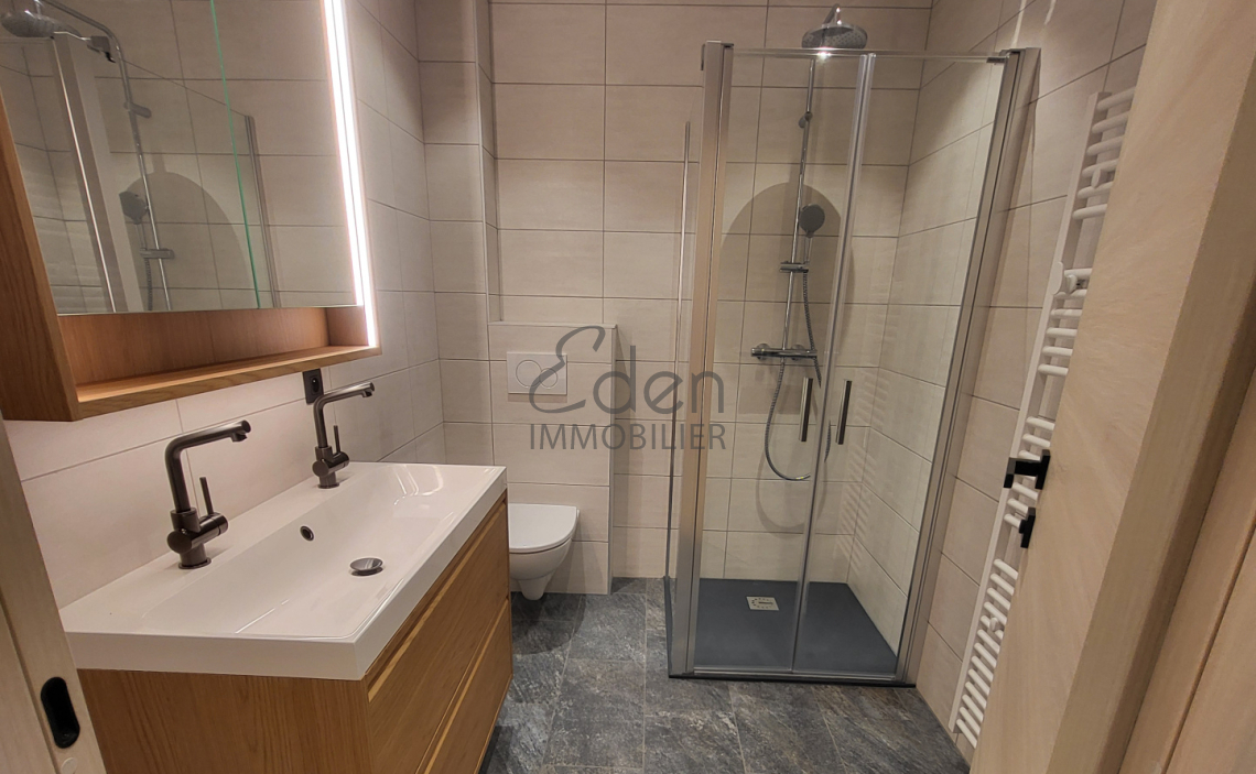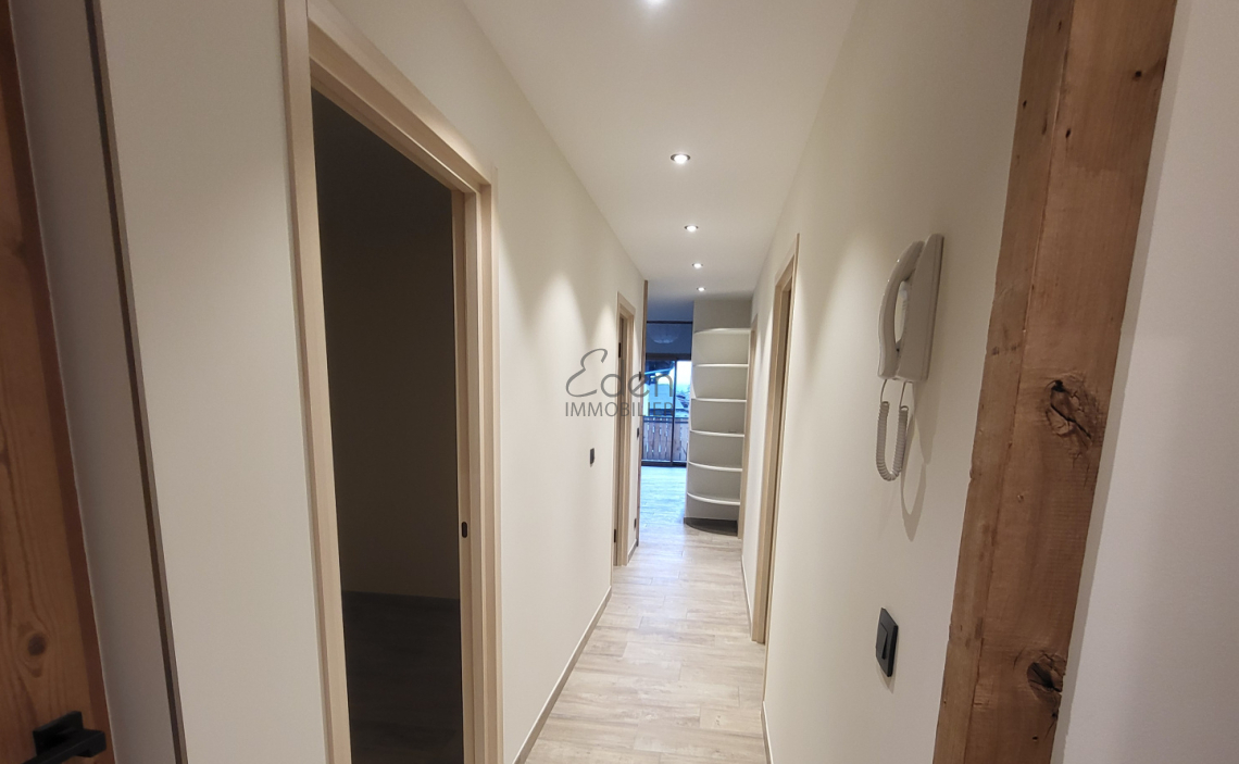 240 Situé dans le quartier résidentiel prisé des Tines à Chamonix, cet appartement neuf de 80 m2 allie élégance contemporaine et charme montagnard. Niché au 1er étage d'un chalet neuf de standing composé de seulement quatre logements, il offre un cadre de vie exclusif, calme et lumineux. Idéal pour une location annuelle ! Agencement : Hall d'entrée, 4 chambres, dont : 1 chambre sous pente (pour enfant), 1 chambre sans placard, 1 chambre avec placard équipé, 1 suite parentale avec placard équipé et salle de douche avec WC attenants, 1 salle d'eau avec WC, Cuisine entièrement équipée, ouverte sur un vaste séjour baigné de lumière, agrémenté d'un poêle à pellets, Grand balcon plein sud, offrant une vue dégagée sur la Vallée et un ensoleillement optimal. Prestations : Exposition plein sud et appartement traversant Cave privative Placard à skis privatif Place de stationnement en sous-sol privative Un bien rare à la location, idéal pour les amateurs de calme et à seulement quelques minutes des transports en commun.