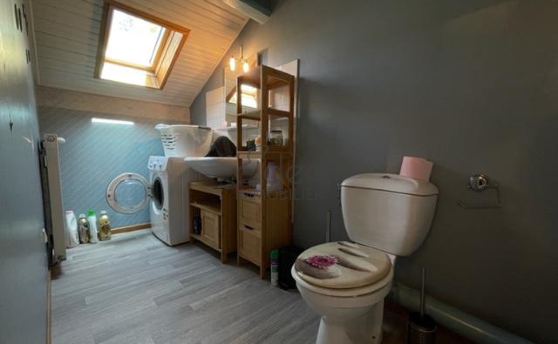 - à l'étage: un palier avec de nombreux rangements en sous pente, une buanderie avec évier et wc, une belle chambre spacieuse avec rangements.