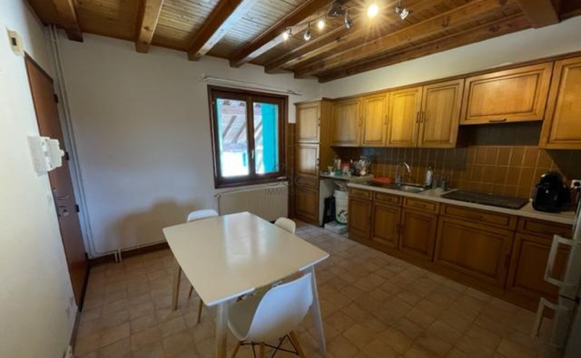 - au rez de chaussée: une grande cuisine semi équipée, un salon, une salle de bains avec wc
