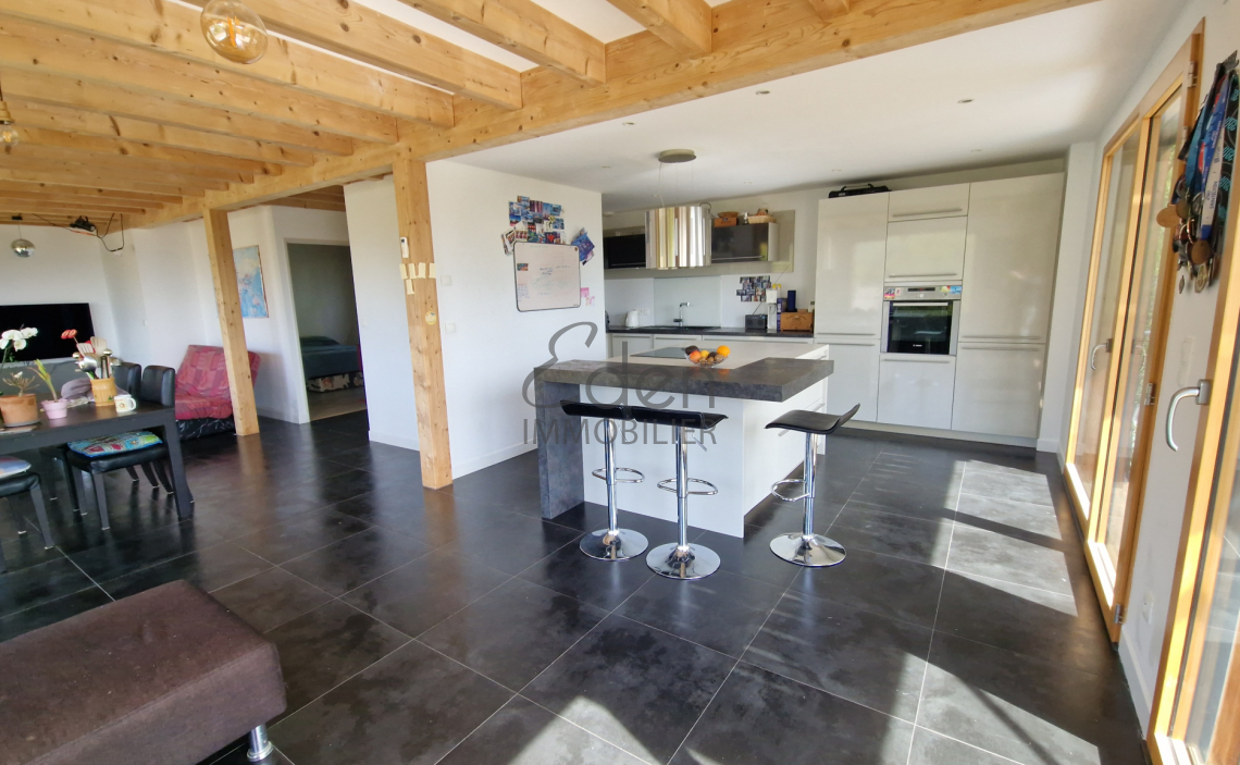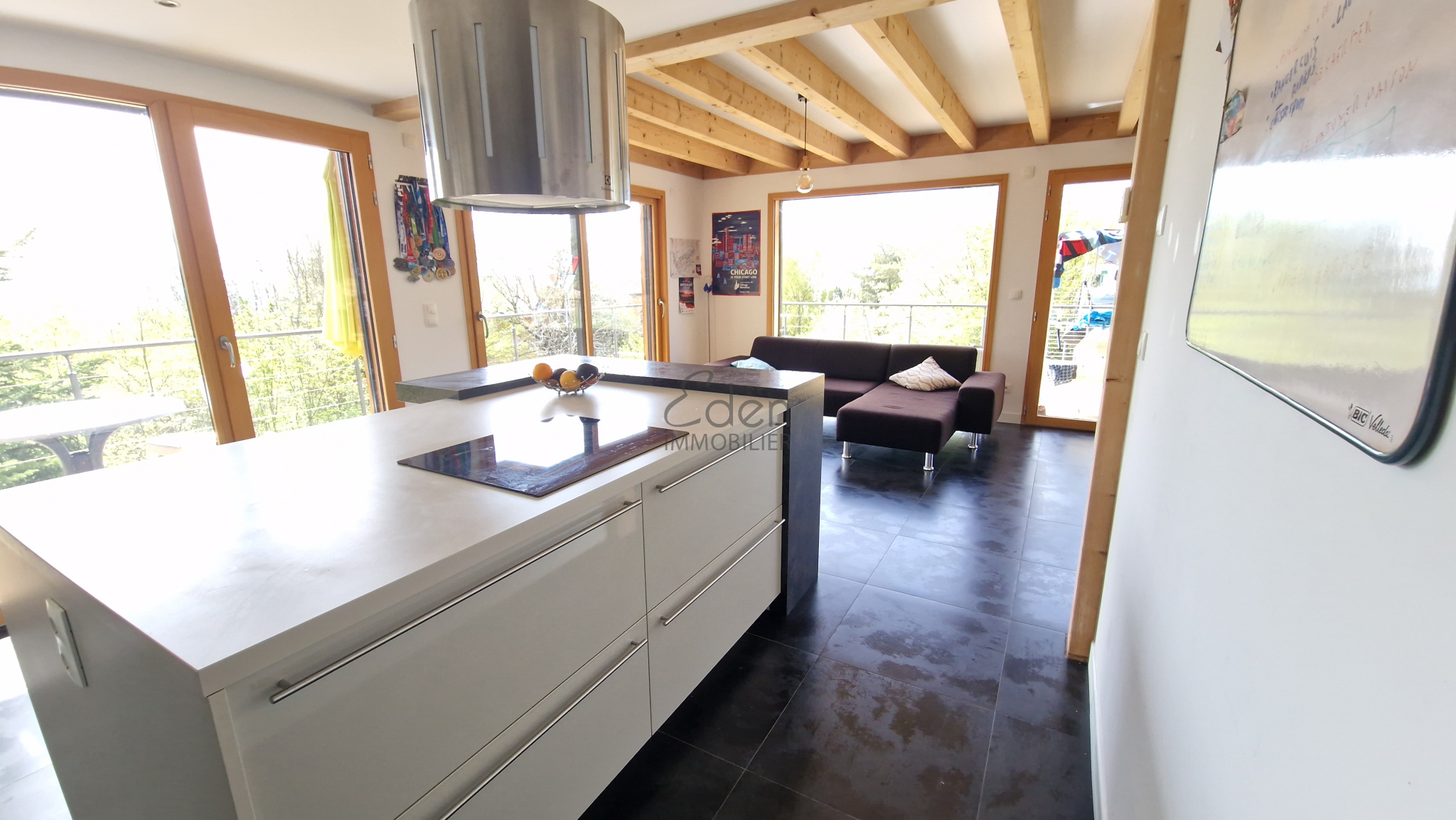 Sur les hauteurs de Gex, dans un secteur calme et verdoyant, cette maison d'architecte récente à ossature bois offre 179 m2 habitables sur une parcelle de 3 122 m2, dont 2 380 m2 de forêt privée et protégée.