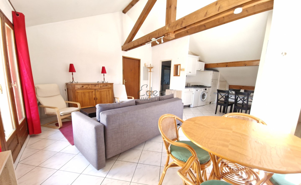 Découvrez ce charmant appartement T2 Bis de 42,5 m2 ( superficie au sol 82 m2) situé au premier étage et dernier étage d'une petite copropriété sécurisée.